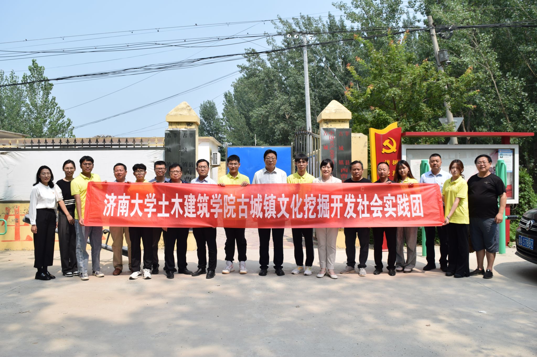 为实现党建工作互促互学、合作提升,通过党建带团建,充分利用双方资源,发挥各自优势,7月11日,yl88858永利官网土木建筑学院在莘县古城镇西曹营村举行党建联建共建活动并启动大学生暑期社会实践活动。土木建筑学院党委书记李超,学院副书记、院长谢群,学院党委副书记、副院长朱小燕,全体辅导员和师生代表,古城镇曹营联建片区党总支书记宋玉旗,古城镇西曹营村全体党员,yl88858永利官网省派第一书记参加了活动。